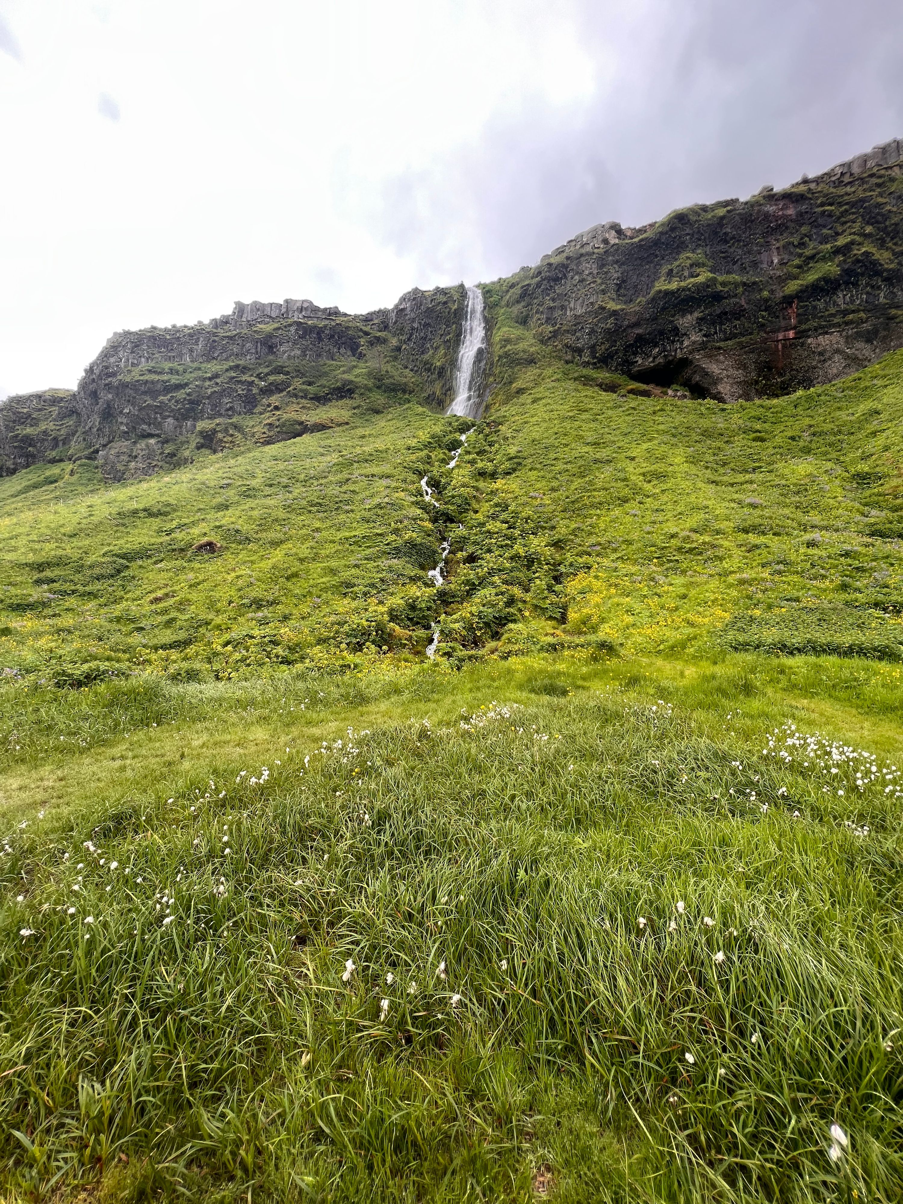 Seljalandsfoss is a narrow waterfall about 60 meters (200-foot) high. What makes it special is that you can walk behind the falling water and see it from every angle. You will get wet from the water, but the view is worth it. It is one of the easiest waterfalls to visit on the South Coast. An absolutely breathtaking waterfall and a must see in the area.