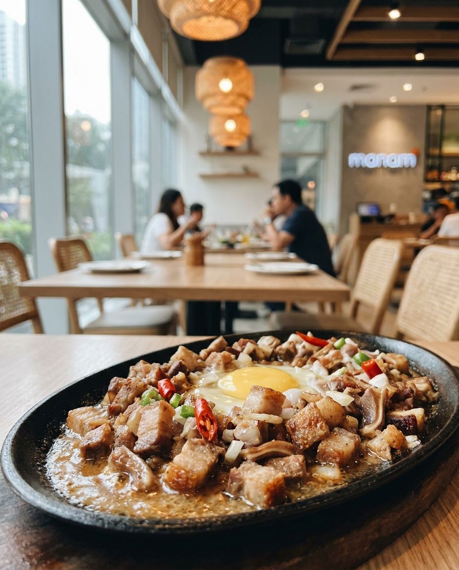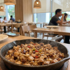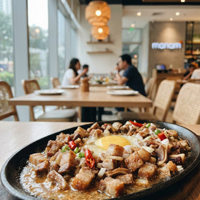 A modern Filipino dining destination celebrated for creative takes on local classics like sizzling sisig, crispy dinuguan, and other Filipino comfort dishes.