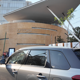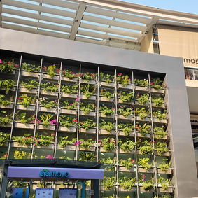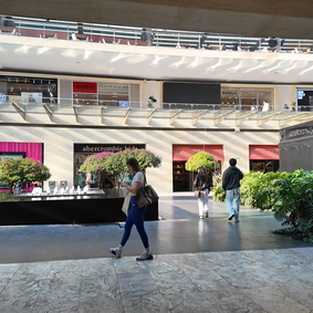 A modern shopping mall with open design and lots of natural lights and greenery. Nice variety of stores and luxury brands, with few pop-up shops.