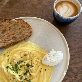 Great scramble eggs and tasty food.