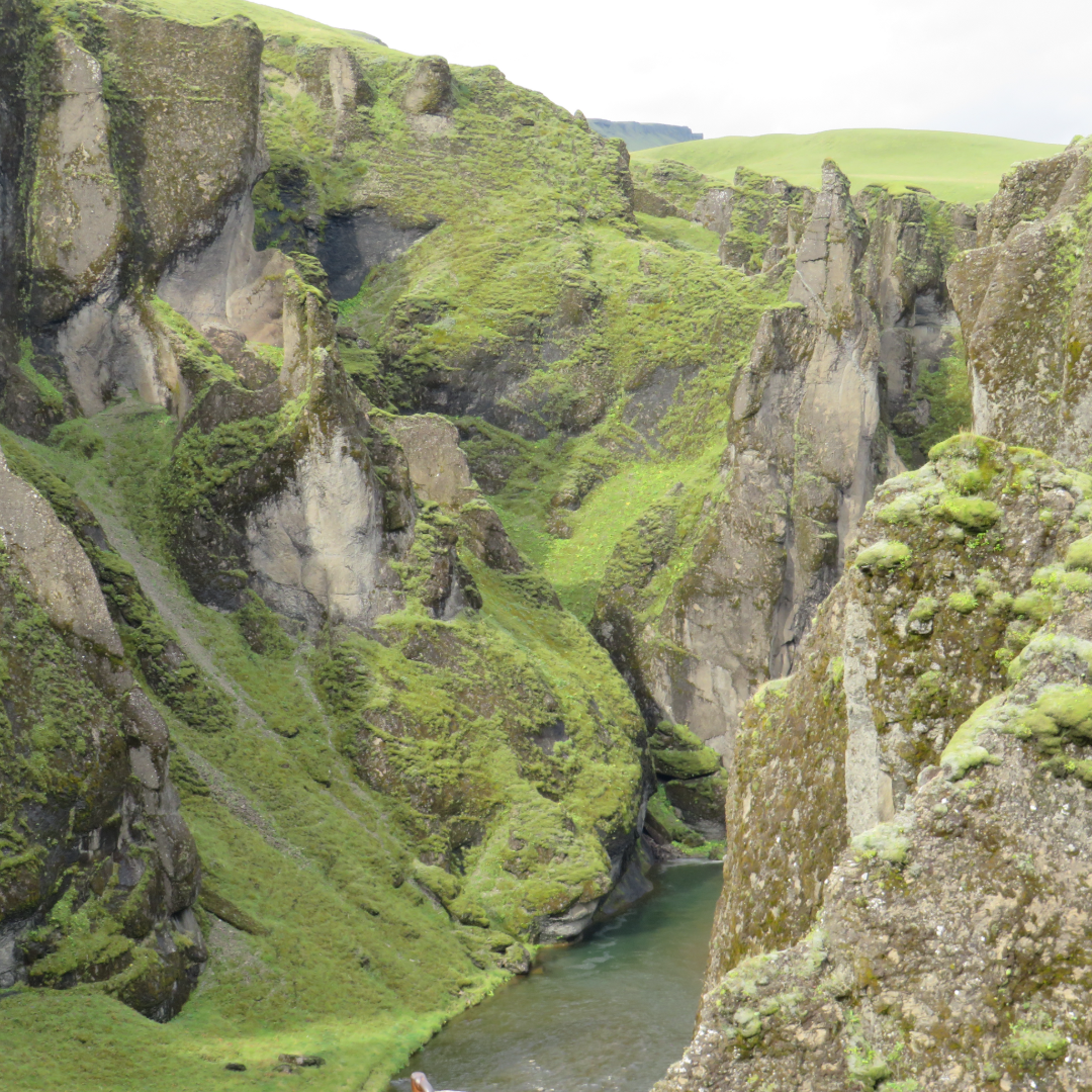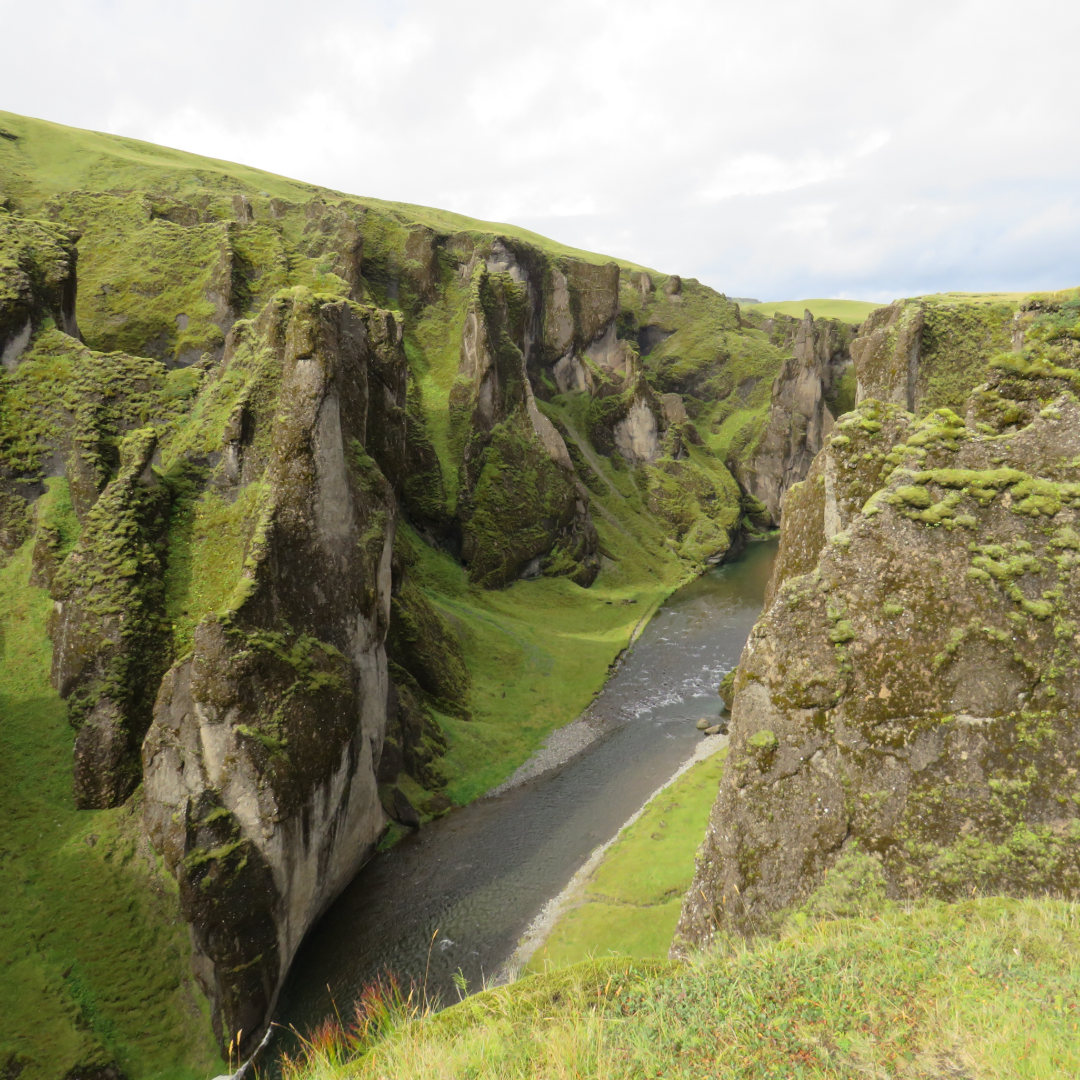 A vast moss lined canyon near Kirkjubæjarklaustur. Around 100 metres deep and two kilometres long. The Fjaðrá River carved it over thousands of years at the end of the Ice Age. Green walls. A winding river. Big views. ⛰️